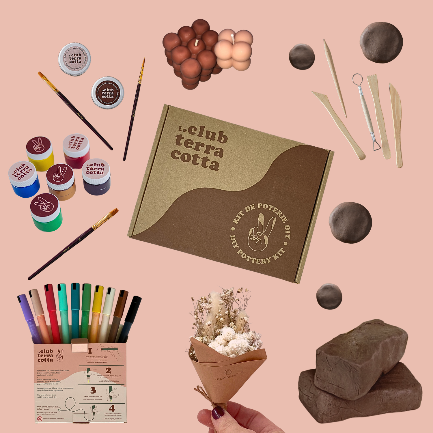 Vraiment tout ce dont tu as envie. La seule limite est ton imagination, mais pour un peu d’inspiration, tu peux visiter notre page Inspiration ou notre page Instagram. Les pièces populaires sont les pots pour les succulents et cactus, les assiettes à babioles/vides poches, les bougeoirs, les décorations murales et les vases à fleurs séchées. Comme l’argile ne cuit pas, elle restera sensible à l’eau mais l'acrylique et le vernis fournis dans la boîte la rendra beaucoup plus résistante. Si tu choisis de faire un cache-pot pour ta plante, nous te conseillons de laisser ta plante dans son pot d’origine et de la sortir pour les arrosages.